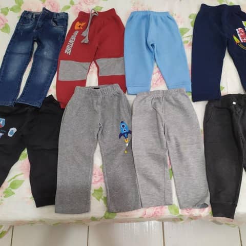 Roupas infantil de menino, tamanho de 1 a 2 anos, são 17 calças compridas, 10 blusas de frio, 3 jardineiras, 14 bermudinhas, 11 camisetas de manga comprida, 4 camisetas de manga curta, 4 regatas